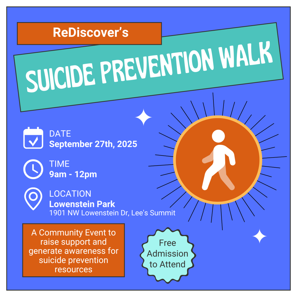 ReDiscover’s Suicide Prevention Team is hosting a Suicide Prevention Awareness Walk for the third year in a row. Attendees can take a mental health or remembrance walk around Lowenstein Park, learn about suicide prevention and wellness resources available in Kansas City, and help fight stigma related to mental health. This event is free to attend.